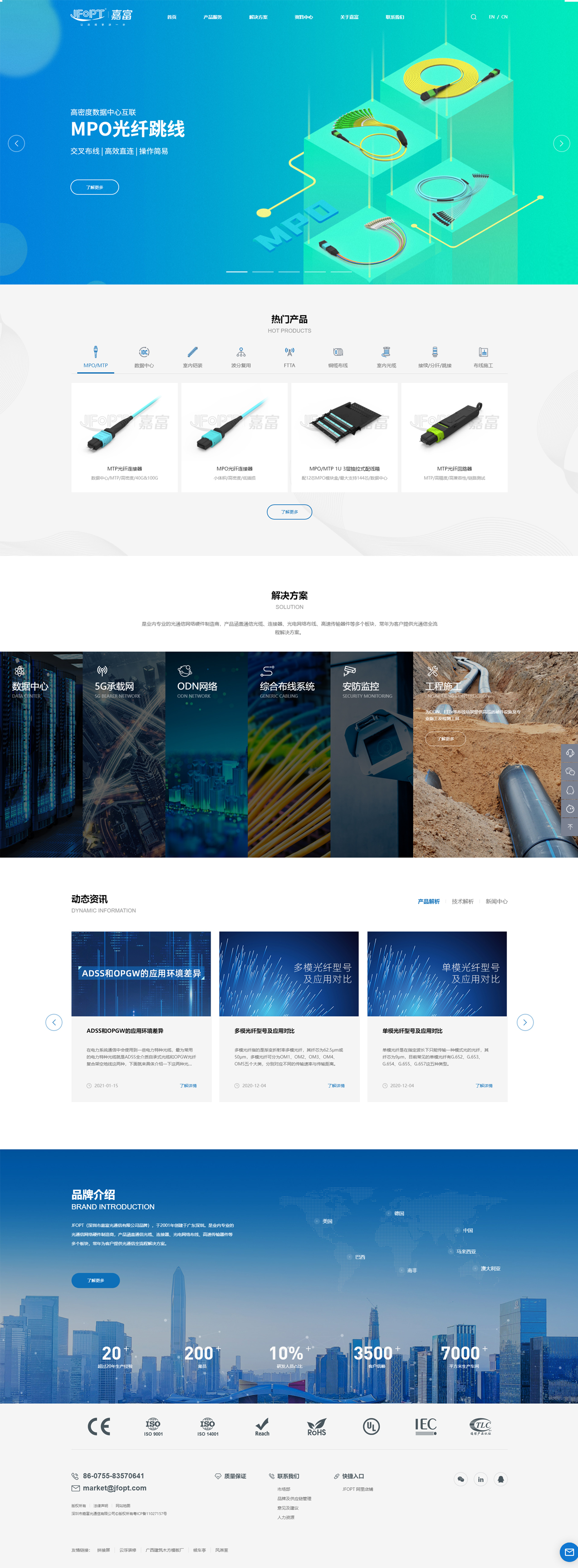 JFOPT(深圳市嘉富光通信有限公司品牌),于2001年创建于广东深圳。是业内专业的光通信网络硬件制造商,产品涵盖通信光缆、连接器、光电网络布线、高速传输器件等多个板块,常年为客户提供光通信全流程解决方案。