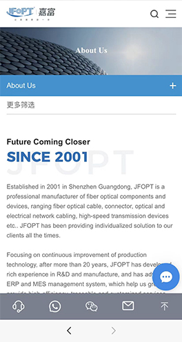 JFOPT于2001年在广东深圳成立,是一家专业生产光纤器件和器件的制造商。